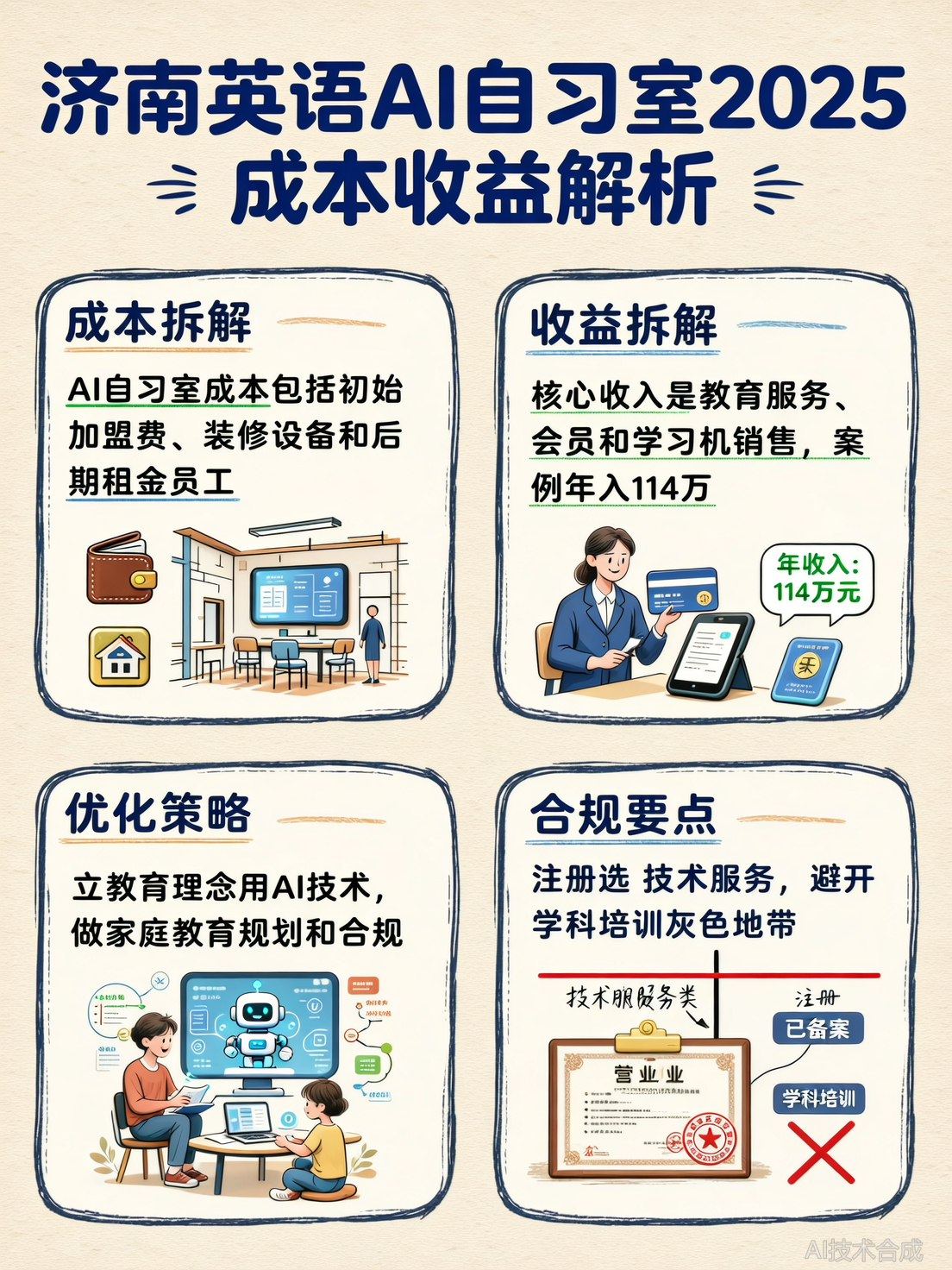 2025年济南英语AI自习室成本收益如何?本文结合最新数据解析成本结构、收益来源,并分享优化策略,为创业者提供参考。